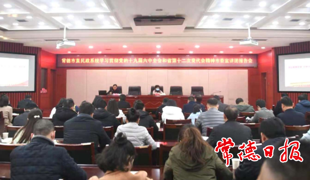 12月20日,常德市直民政系統(tǒng)舉行專題宣講報告會,集中學(xué)習(xí)黨的十九屆六中全會和省第十二次黨代會精神。
