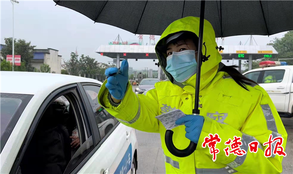 市公安交警柳葉湖大隊民輔警雨中堅守常德東北(柳葉湖)高速口