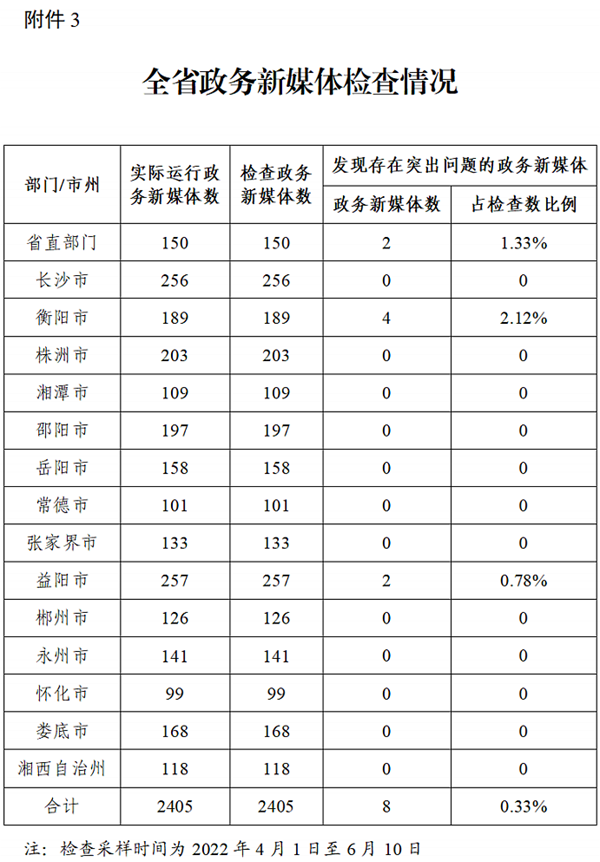湖南省政務(wù)管理服務(wù)局關(guān)于2022年第二季度全省政府網(wǎng)站與政務(wù)新媒體檢查情況的通報