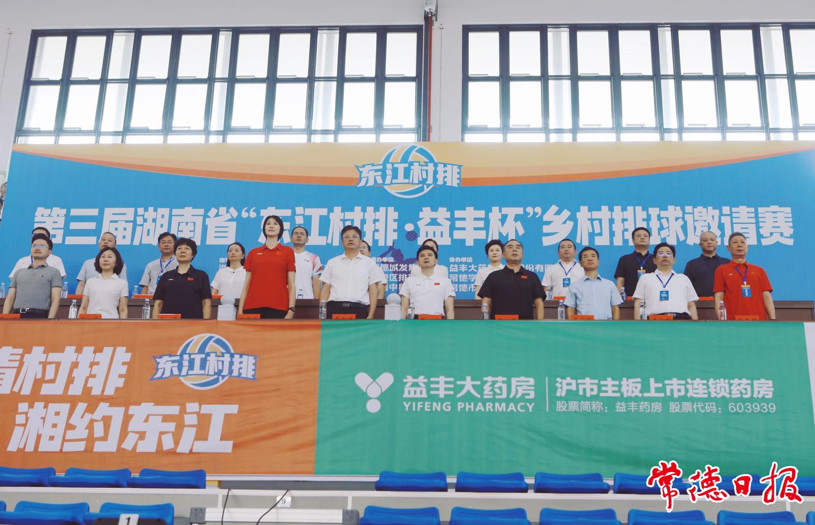 7月26日,第三屆湖南省“東江村排·益豐杯”鄉(xiāng)村排球邀請賽開幕式在常德學(xué)院體育館舉行。市委書記羅毅君出席開幕活動。省體育局黨組書記熊倪出席并宣布賽事開幕。前中國女排運動員、奧運冠軍趙蕊蕊為揭幕戰(zhàn)開球。