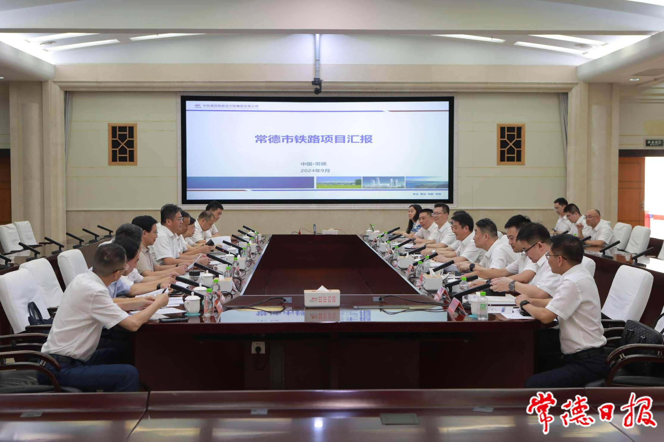 9月18日下午,市委書記羅毅君與來常考察的中鐵第四勘察設(shè)計(jì)院集團(tuán)有限公司(以下簡稱“鐵四院”)黨委副書記、院長光振雄一行座談,雙方就宜常高鐵、常德經(jīng)開區(qū)德山港區(qū)專用線等相關(guān)事宜進(jìn)行深入交流洽談。