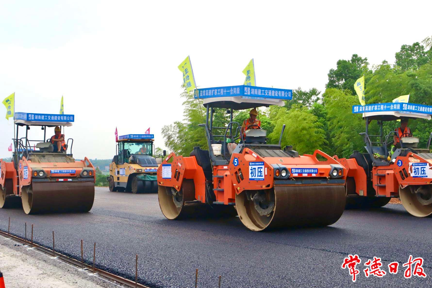 連日來,常德市天氣晴好,是項目施工建設的黃金期。益常高速擴容工程建設者們搶抓時機,開啟項目建設“加速度”。8月16日,該工程十一標首段瀝青下面層試驗段順利攤鋪完成,全面進入瀝青路面施工階段。