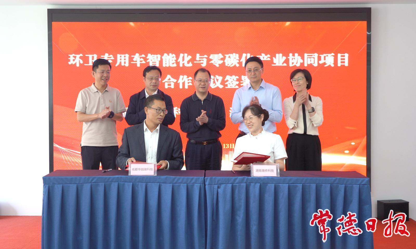 活動中,廣元市劍閣縣人民政府、金健米業(yè)、四川省湖南商會三方簽署合作協(xié)議;成都華越疆科技有限公司與湖南瑭橋科技發(fā)展有限公司簽訂《瑭橋科技環(huán)衛(wèi)專用車智能化與零碳化產(chǎn)業(yè)協(xié)同項目合作協(xié)議》。