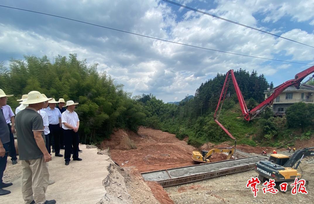 周振宇在國(guó)道G319茶庵鋪路段路面塌方險(xiǎn)情點(diǎn)督導(dǎo)檢查災(zāi)后重建工作