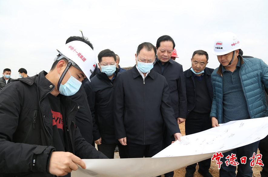 周振宇一行在漢壽站督導(dǎo)高鐵站建設(shè)