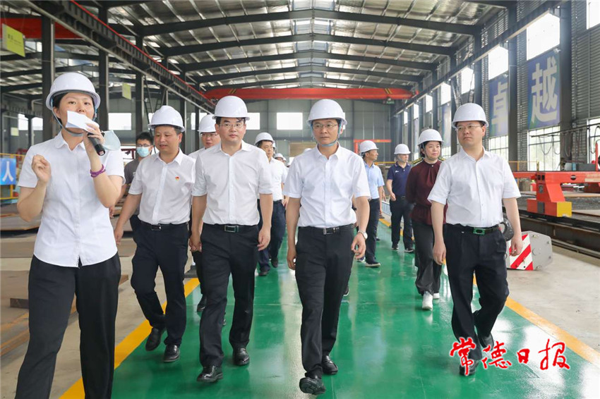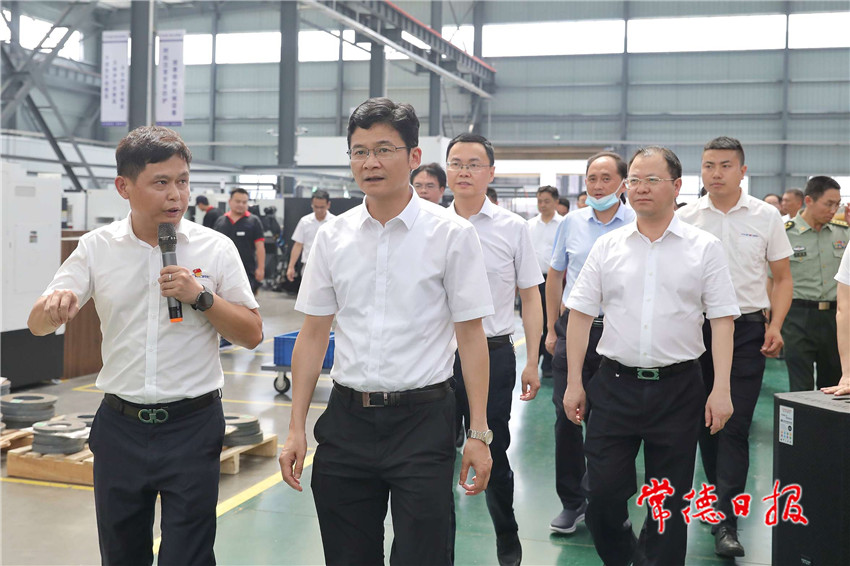 當(dāng)天,曹志強(qiáng)、周振宇一行先后前往武陵區(qū)、常德經(jīng)開區(qū)、漢壽縣、桃源縣、鼎城區(qū)、常德高新區(qū)和臨澧縣等地,實(shí)地觀摩“五好”園區(qū)建設(shè)、產(chǎn)業(yè)項(xiàng)目發(fā)展,考察了湖南天海電器有限公司,湖南金立星機(jī)械科技有限公司鋁門窗、幕墻、高鐵機(jī)械研發(fā)生產(chǎn)項(xiàng)目,常德云港生物科技股份有限公司原料藥生產(chǎn)項(xiàng)目,湖南智見園區(qū)管理服務(wù)有限公司磁性材料產(chǎn)業(yè)園項(xiàng)目,康普生物醫(yī)藥產(chǎn)業(yè)園項(xiàng)目,湖南康澤新材料科技有限公司軟包裝生產(chǎn)線建設(shè)項(xiàng)目,湖南藍(lán)鷹工程機(jī)械有限公司工起塔基配件生產(chǎn)項(xiàng)目,湖南飛沃新能源科技股份有限公司高強(qiáng)度緊固件智能制造二期項(xiàng)目,湖南萬大機(jī)械制造有限公司,捷芯集成電路封裝基地項(xiàng)目,湖南沃晟凱科技有限公司,湖南南華樂器有限公司,湖南安福環(huán)保新材料循環(huán)產(chǎn)業(yè)園三期項(xiàng)目和湖南星科液壓油缸智能制造項(xiàng)目。