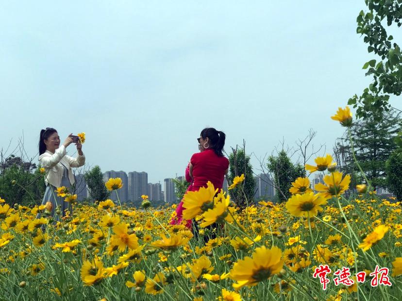 柳葉湖邊盛開著大片的劍葉金雞菊