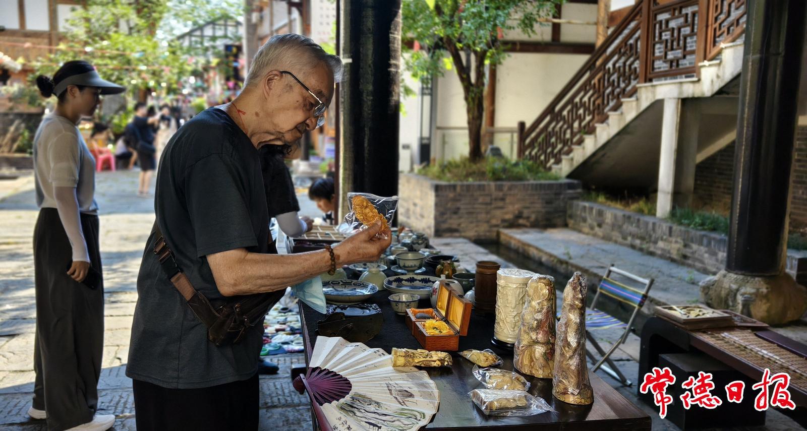 7月25日至26日,2025年城壕灣“晨曦尋寶 夜燈覓趣”古玩藝術(shù)收藏品地?cái)偨涣鲿?huì)舉行。古瓷的溫潤(rùn)光澤、玉器的細(xì)膩質(zhì)感、木雕的精巧手藝、文房雅玩的清雅韻味,還有承載紅色記憶的老物件……在這里,漫步青石板,感受老常德韻味的同時(shí),還能近距離體驗(yàn)古玩競(jìng)價(jià)的樂(lè)趣。
