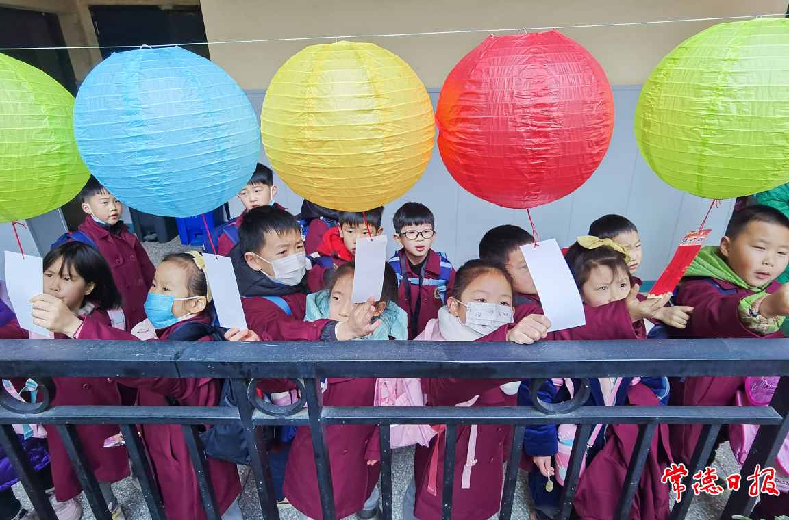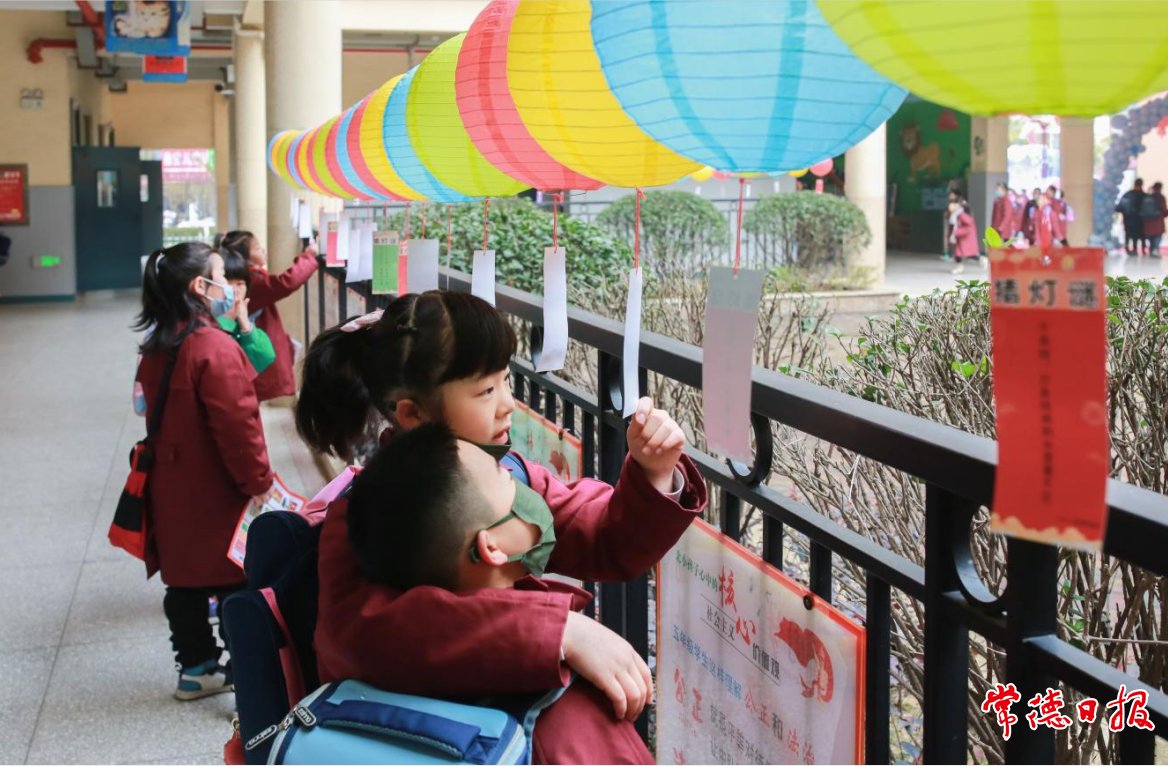 圖為北正街恒大華府小學(xué),前來報(bào)道的學(xué)生在“猜燈謎”
