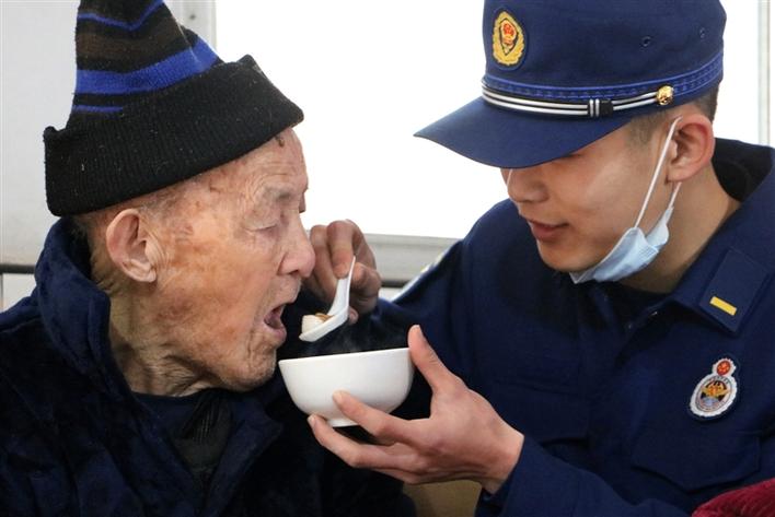 津市消防救援大隊(duì)走進(jìn)敬老院,與老人共度元宵節(jié)。陳自德 攝