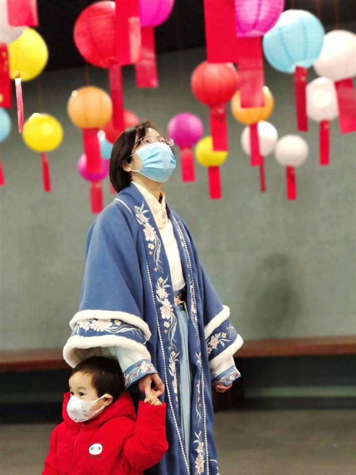 常德博物館,市民著漢服猜燈謎。徐志雄 攝