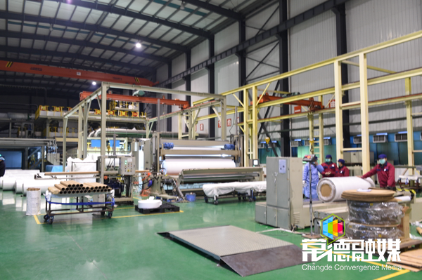 湖南欣龍非織造材料有限公司內(nèi)正加緊生產(chǎn)口罩所需原材料無紡布