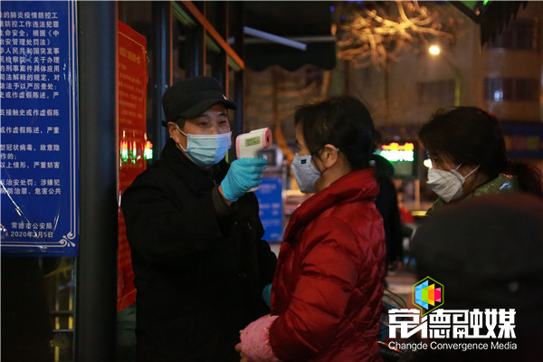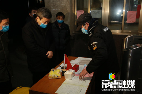 隨后,曹立軍一行前往九重天小區(qū)。該小區(qū)位于沅安路與人民路交會(huì)處附近,周邊有常德市第四人民醫(yī)院、北坊農(nóng)貿(mào)市場(chǎng)、武陵閣步行城、老西門(mén)文化街等人流集中場(chǎng)所?!澳壳靶^(qū)有沒(méi)有從湖北或者武漢來(lái)常、返常人員?小區(qū)居民進(jìn)出怎么管理?”在小區(qū)東門(mén)執(zhí)勤處,面對(duì)曹立軍的提問(wèn),保安人員表示要物業(yè)公司管理人員才了解詳細(xì)情況。記者在小區(qū)大門(mén)口看到,物業(yè)保安人員正對(duì)進(jìn)入小區(qū)的人員測(cè)量體溫,但并未登記人員信息?!斑@些都是我們小區(qū)的居民,我們都認(rèn)識(shí)?!睂?duì)于為何沒(méi)有按規(guī)定登記人員出入信息,保安人員這樣回答。