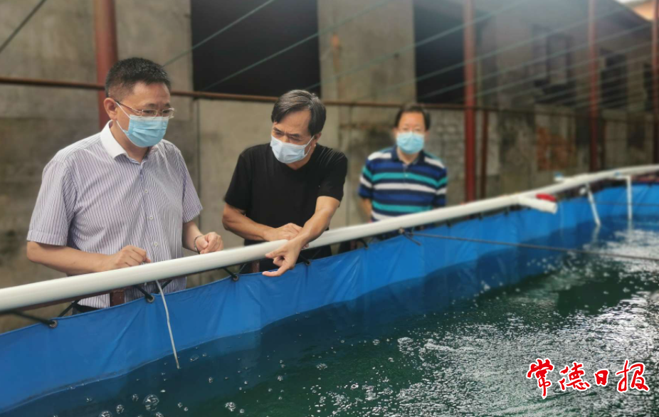 在鼎城區(qū)牛鼻灘鎮(zhèn)調(diào)研工廠化對蝦養(yǎng)殖情況