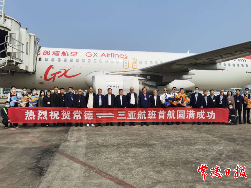 昨日13時(shí)05分,153名旅客從常德桃花源機(jī)場(chǎng)出發(fā),搭乘北部灣航空?qǐng)?zhí)飛的GX8896航班前往三亞。至此,常德-三亞直飛航線成功首航。副市長(zhǎng)湯祚國(guó)出席常德-三亞直飛航線首航儀式并宣布首航成功。