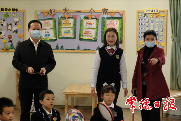在常期間,葉紅專一行先后來到常德市第一幼兒園西院、鼎城區(qū)草坪鎮(zhèn)芙蓉學校。其中,常德市第一幼兒園西院是省重點民生實事——增加公辦幼兒園學位項目。該項目總投資6890萬元,辦園規(guī)模24個班,可提供720個公辦學位。今年10月,該園順利開園。目前有在崗職工44人、在園幼兒208名。鼎城區(qū)草坪鎮(zhèn)芙蓉學校項目總投資4610萬元,是在草坪鎮(zhèn)中學原校園校舍基礎(chǔ)上進行改擴建。項目完成后,新增學位近300個,現(xiàn)有教學班16個、在校學生785名。葉紅專走進學校,與當?shù)卣皩W校主要負責人深入交談,詳細了解學校建設(shè)、師資配備、生源特點等情況。在常德市第一幼兒園西院,葉紅專一行還走到孩子們中間,與孩子們進行互動。