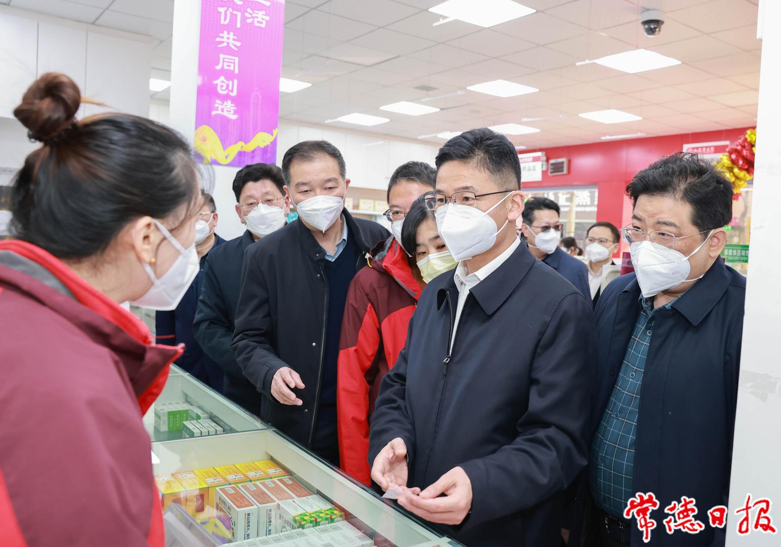 曹志強在湖南九芝堂零售連鎖有限公司常德宏大藥店調(diào)研督導藥品保供工作