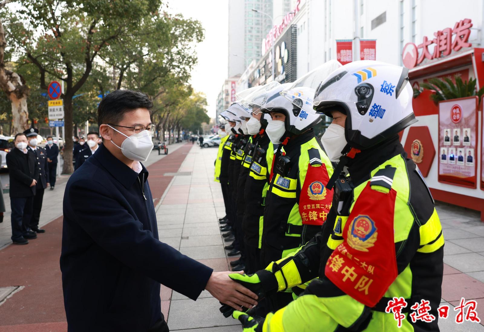 在市城區(qū)丹陽天橋,曹志強(qiáng)、周振宇向廣大公安交警致以新春的祝福和誠摯的慰問,勉勵(lì)大家要繼續(xù)發(fā)揚(yáng)頑強(qiáng)拼搏、無私奉獻(xiàn)的優(yōu)良作風(fēng),進(jìn)一步堅(jiān)定信念、堅(jiān)守崗位,全力保障春運(yùn)道路交通安全,全力以赴守護(hù)好人民群眾生命財(cái)產(chǎn)安全,讓全市人民度過一個(gè)歡樂祥和的新春佳節(jié)。