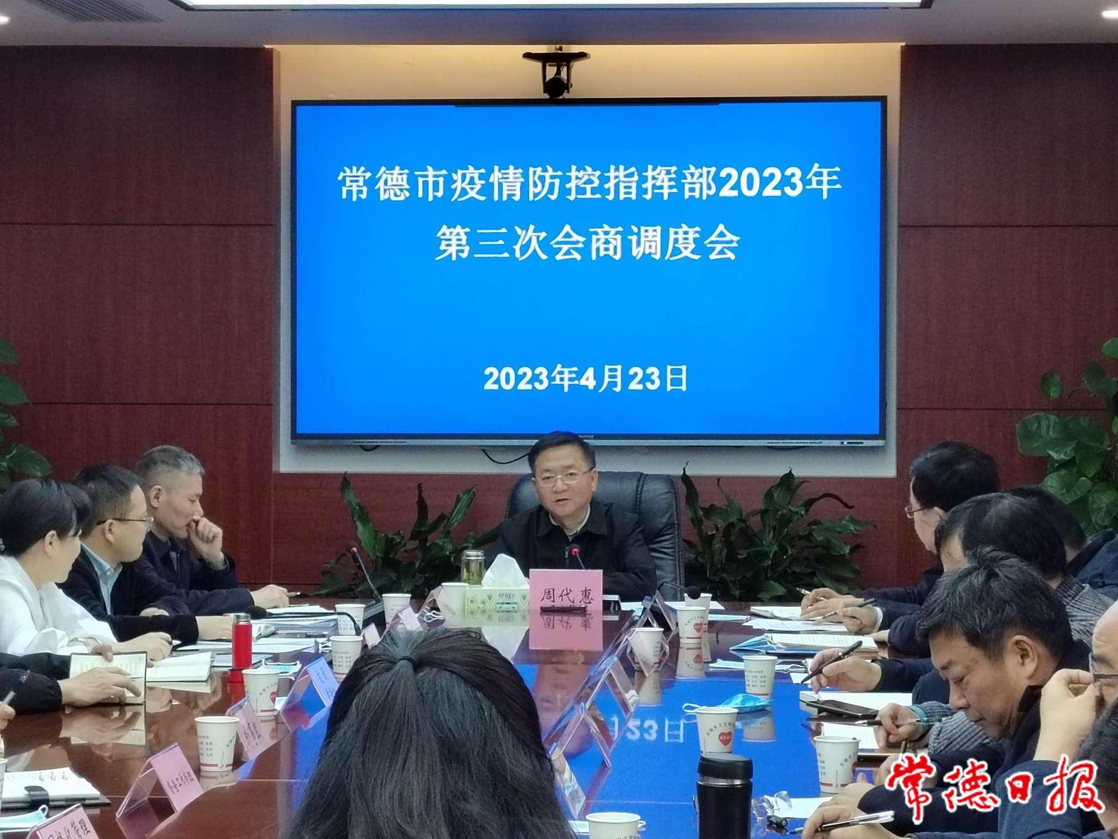 4月23日,副市長周代惠主持召開市疫情防控指揮部2023年第3次會商調度會,會議傳達了近期省政府主要領導批示精神及上級有關文件精神,對我市新冠疫情防控工作進行了分析研判,對“五一”前后疫情防控工作進行了安排部署。